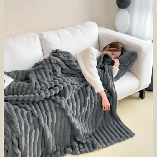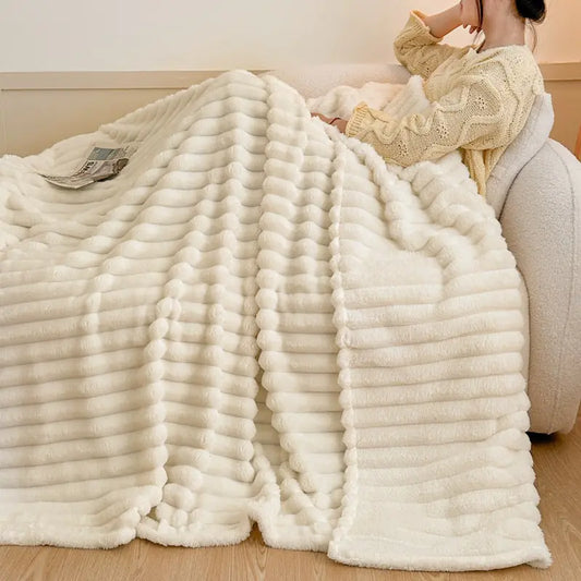 Upgraded Plush Rabbit Fur Striped Blanket