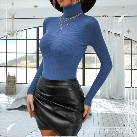 Solid Ribbed Turtle Neck Long Sleeve Knitted Top