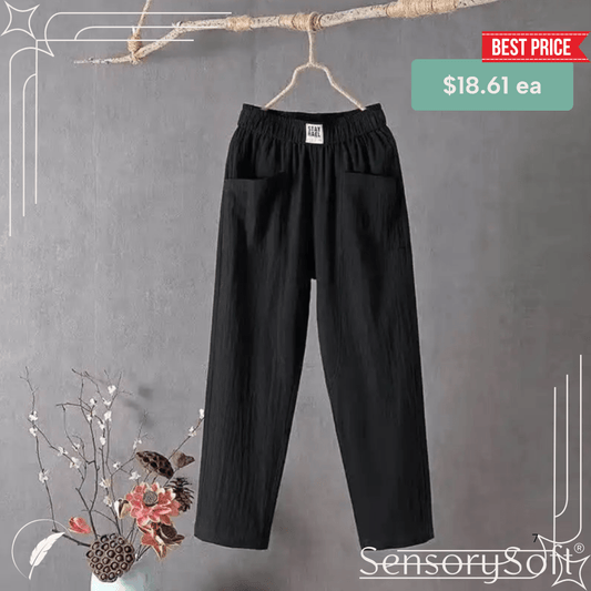 Cotton And Linen Casual Trousers With Elastic Waistband