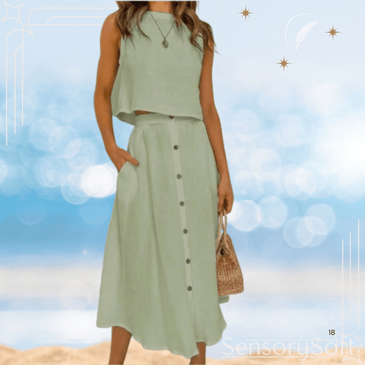Elegant Two-Piece Vest and Long Skirt Set – Effortless Style and Comfort