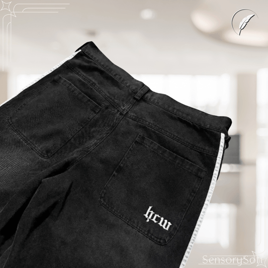 Vintage Stripe Stitching Embroidered Jeans for Men