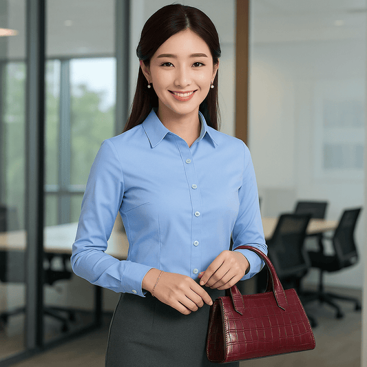 Women's Long Sleeve Slim Fit Business Shirt - Sophisticated Blue