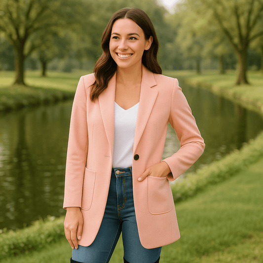 Women's Long Sleeve Solid Color Lapel Suit Jackets-Elegant Pink