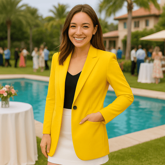 Women's Long Sleeve Solid Color Lapel Suit Jackets-Empowering Yellow