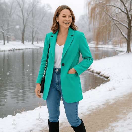 Women's Long Sleeve Solid Color Lapel Suit Jackets-Light Green