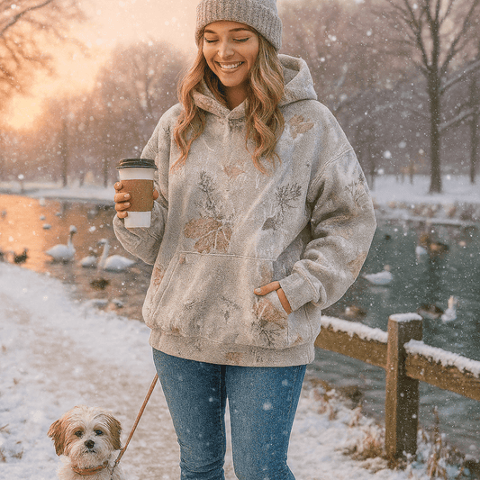 Women's Oversized Camouflage Hoodie with Maple Leaf Print