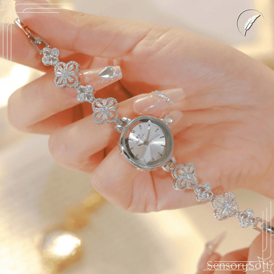 Women's Zircon-Encrusted Clover Wristwatch – Gold and Silver Options