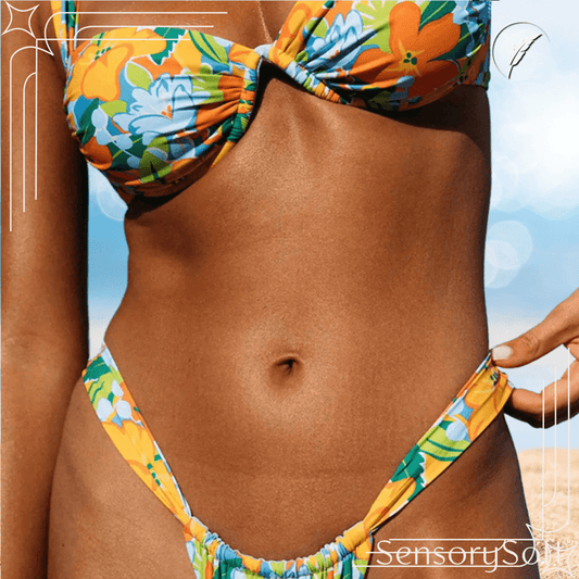 Thong Brazilian Bikinis Set - Blue and Yellow Bathing Suit Beachwear