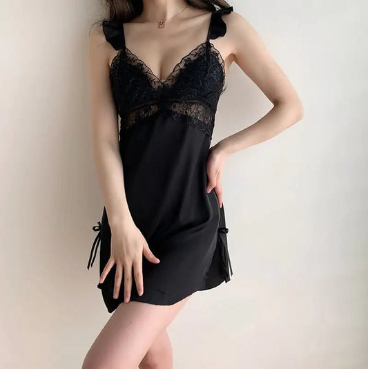 Elegant Backless Lace-Up Satin Suspender Dress - In Black