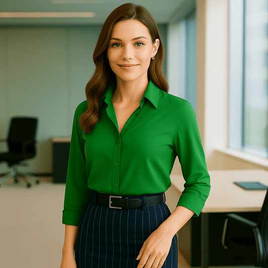 Elegant Long Sleeve Casual Women's Street Shirt - Color Green