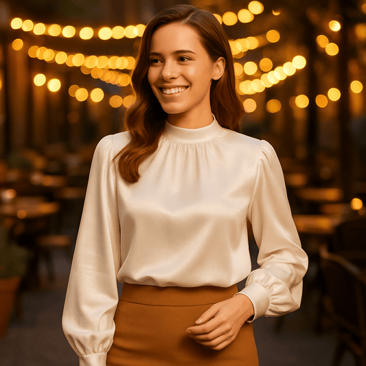 Korean Fashion Women's White Satin Long Sleeve Shirt