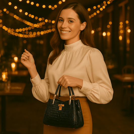 Crocodile Pattern Women's Handbag - Timeless Elegant Black