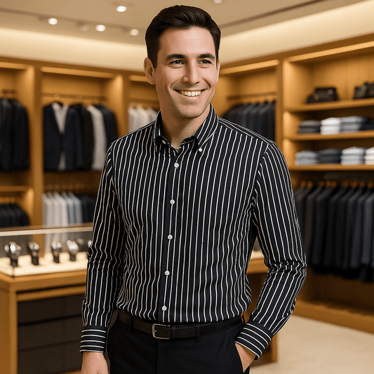 Men's Striped Long Sleeve Stretch Shirt for Suits