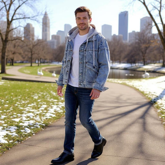 UNISEX Loose Fit Denim Jacket with Hood and Pockets