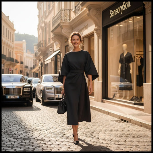 Loose Batwing Sleeve Dress Fashion Waist-tighted Solid Color Elegant Dresses For Women Clothing - In Traditional Black