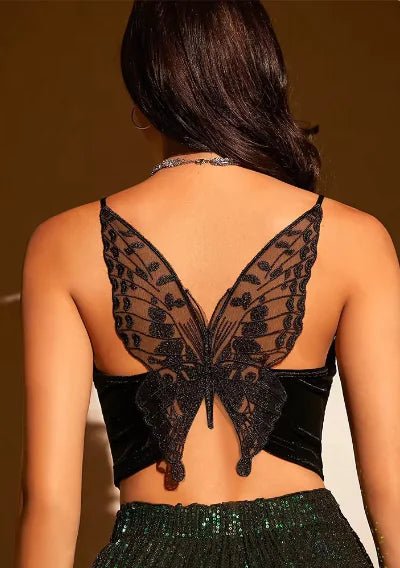 Ladies New Butterfly Embroidered Strap Top