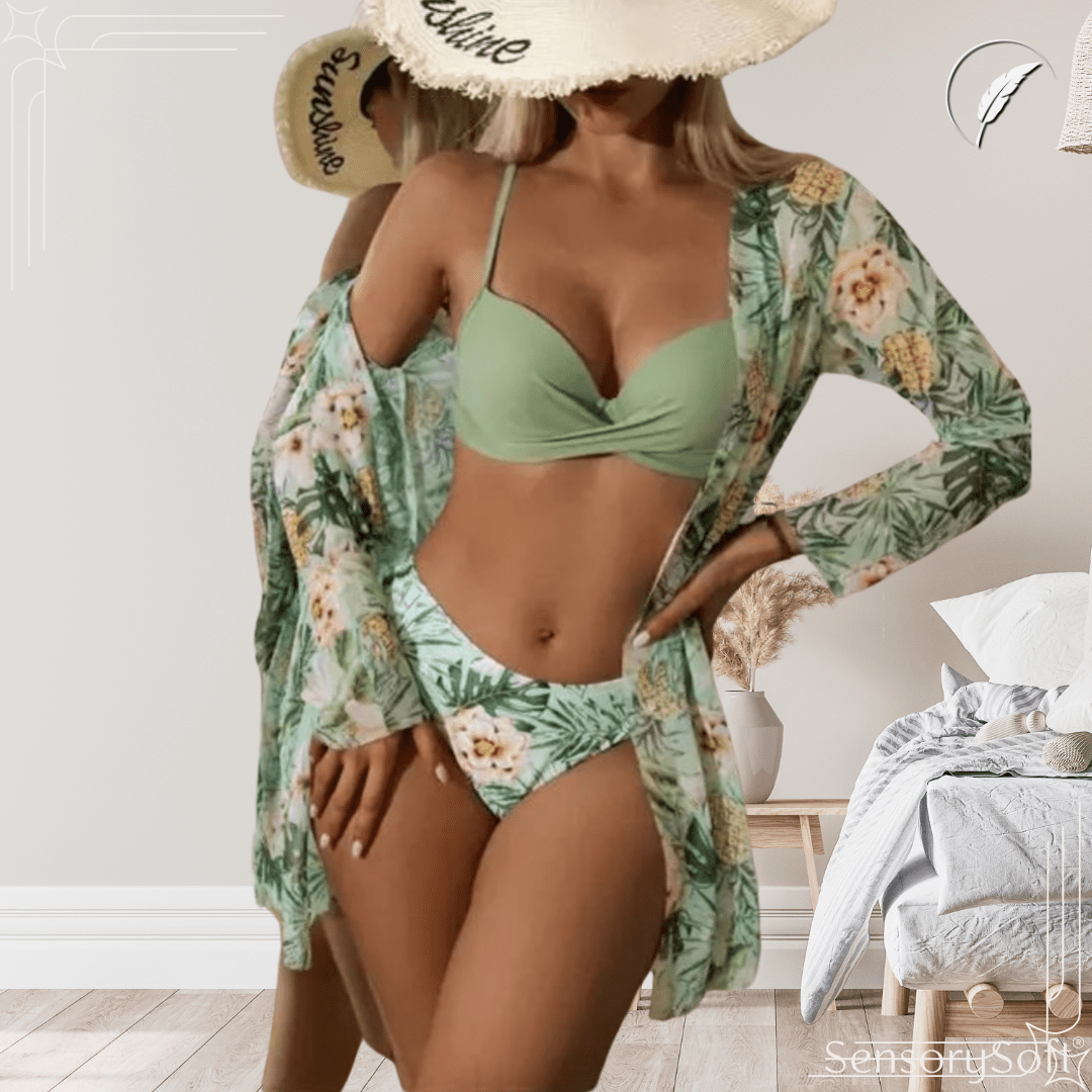 Turn heads this summer with our sexy Bikinis and Cover Set, designed to flatter every curve and make a statement at the beach or poolside. This 3-piece set includes a printed bikini with supportive high-waisted bottoms and a stylish, lightweight cover-up for effortless elegance.